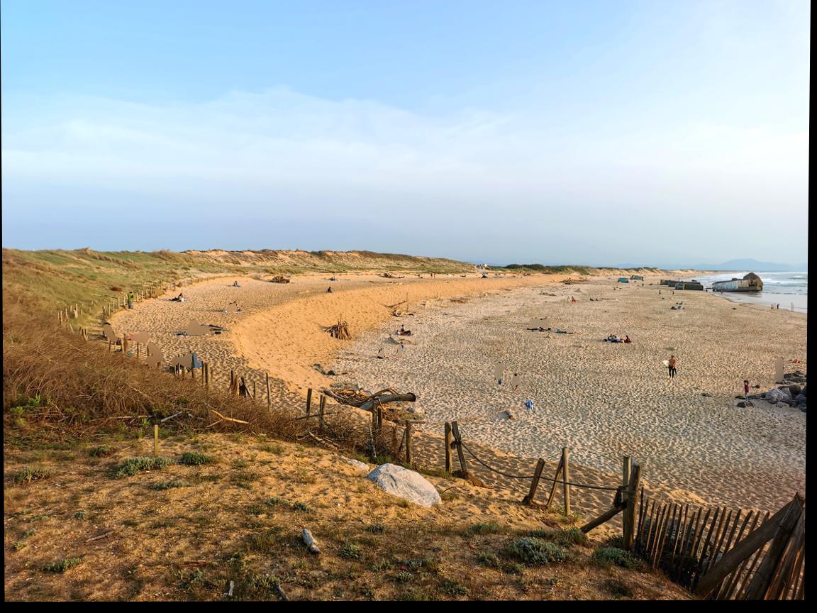 Plage du Santocha, à côté de l’héliport sur la dune dominant la plage. Vue sud.